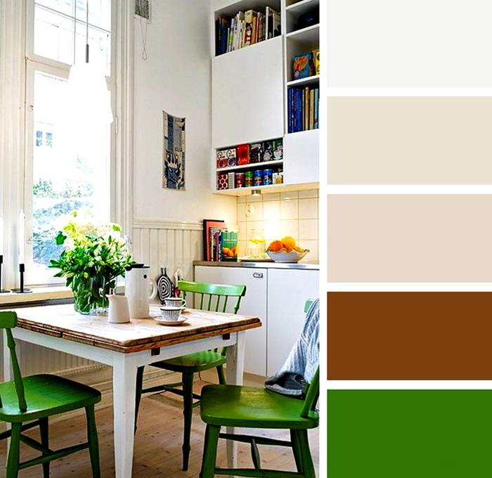 ในการออกแบบสีจานสีคือการรวมกันของหลายเฉดสี ก่อนอื่นคุณต้องหาโทนสีพื้นฐานจากนั้นคิดถึงสภาพแวดล้อมที่เหมาะสมสำหรับเฉดสี สำหรับห้องครัวคุณสามารถเสนอทางเลือกต่อไปนี้: