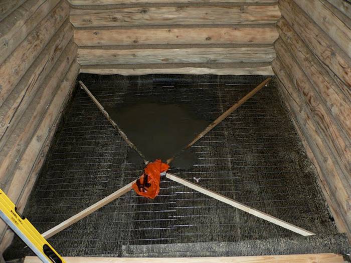 - จากนั้นเติมสารละลายคอนกรีตซึ่งควรมีขนาดน้อยกว่า 4 ซม. นั่นคือมันควรจะอยู่ที่หน้าแปลน หากคุณไม่ทำฉนวนกันความร้อนก็จะต้องใช้คอนกรีตมากขึ้น