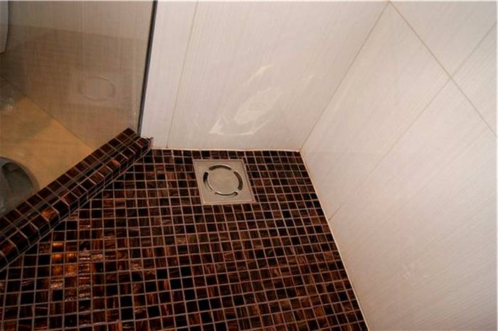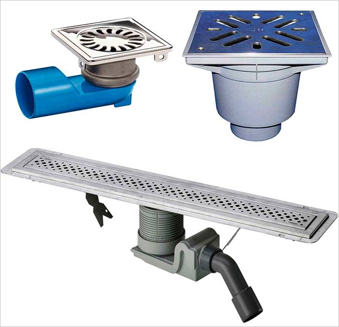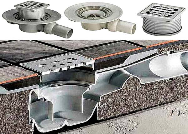 ท่อระบายน้ำที่พื้นด้านล่าง กระเบื้อง - เป็นการออกแบบตกแต่งรูระบายของเหลว เป็นที่นิยมในต่างประเทศในรัสเซียการออกแบบนี้สามารถพบได้ในสถานพยาบาลและโรงพยาบาลและด้วยเทรนด์แฟชั่นล่าสุดในอพาร์ตเมนต์