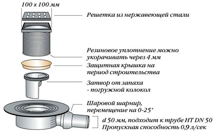 ท่อระบายน้ำใต้กระเบื้อง: พันธุ์และคุณสมบัติของการประกอบตัวเอง