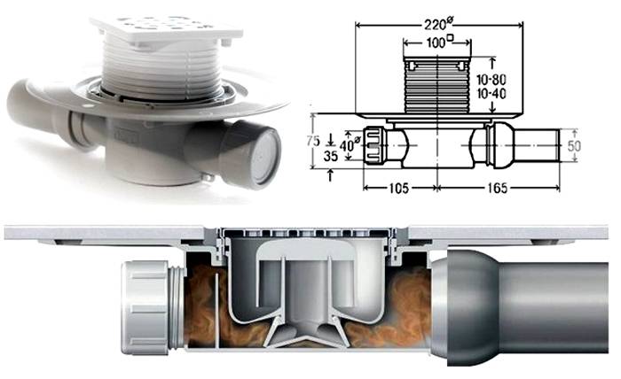 กับดักสำหรับระบายน้ำมีหลายประเภทและติดตั้งไว้ที่ใดก็ได้ในห้องอาบน้ำฝักบัว