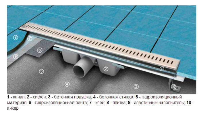 โดยปกติการติดตั้งบันไดจะเกิดขึ้นก่อนที่จะเทการพูดนานน่าเบื่อ ในบ้านของคุณเองมันง่ายที่จะทำในขั้นตอนการก่อสร้าง แต่ในอพาร์ตเมนต์มันค่อนข้างยากที่จะทำระบบระบายน้ำ ในบางกรณีคุณจะต้องยกพื้นสูงถึง 15 ซม. และต้องสร้างความลาดชันเพื่อให้น้ำไหลเข้าสู่ช่องทาง