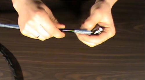 หากคุณไม่รู้สึกอยากยุ่งกับขวดพลาสติกคุณสามารถใช้สายโลหะ ความยาวควรมีอย่างน้อยหนึ่งเมตร ปลายด้านหนึ่งควรจะฟูขึ้นเพื่อทำแปรง อันที่สองบิดเป็นวงแหวนใช้สำหรับติดที่จับ
