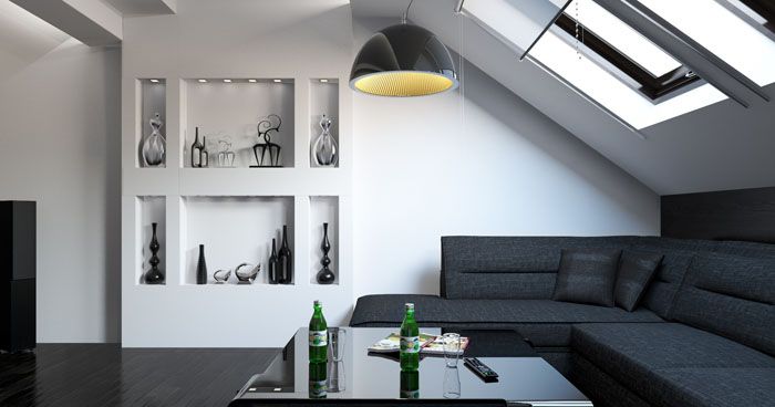 - Tavan arasında tam teşekküllü bir oturma odası yapmak çok kolay. Mobilyaların yerleşimi, tavanların gerçek yüksekliği dikkate alınarak ayarlanır.