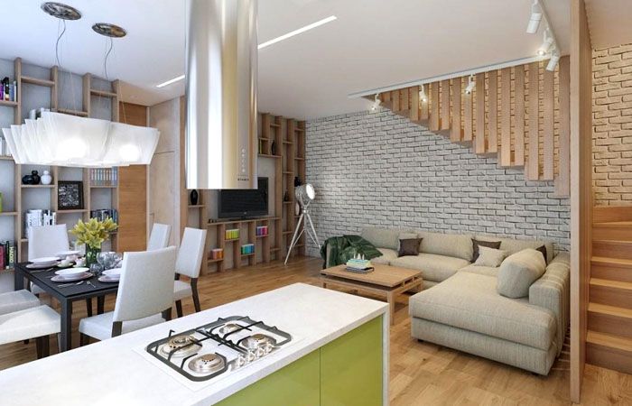 - Birkaç işlevsel alanı birleştirmek, nispeten küçük bir toplam alanla bile yeterli alan oluşturmaya yardımcı olur