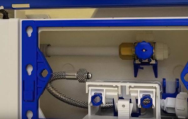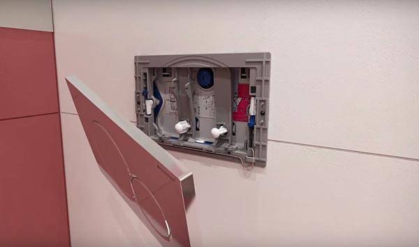 İşin son aşaması, boşaltma düğmesini bağlamaktır. Bitirme işinin üretimi sırasında, montaj ünitesi şimdi bir bıçakla kesilerek dikkatlice çıkarılması gereken özel bir kasa ile kapatıldı. Düğmeyi bağlamadan önce, sistemi kazara sıkışmış kalıntılardan temizlemek için musluğu manuel olarak açarak bir test çalıştırması yapmalısınız. Daha sonra butonu sisteme bağlayarak dekoratif paneli takabilirsiniz.