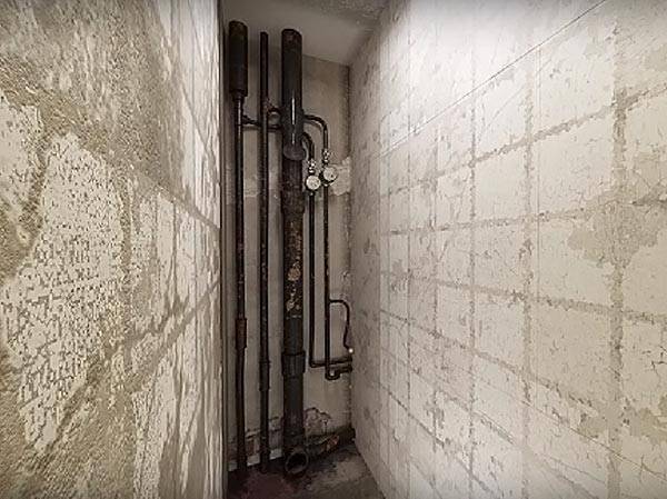 Aşama 1 - eğer kurulmuşsa, bu eski sıhhi tesisatın sökülmesidir. Sıhhi tesisatla birlikte, taşıyıcı duvarın tüm dış kaplamalarını kaldırmanız gerekecektir, çünkü çerçeve doğrudan tabana takılmalıdır.