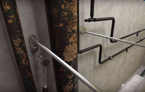 Bariz dezavantajlar, ustadan hassasiyet ve özen gerektiren belirli bir kurulum karmaşıklığını içerir. Çerçeve zemine ve duvara tutturulmuştur, bu nedenle çalışma sırasında sürekli olarak seviye okumalarını kontrol etmelisiniz.