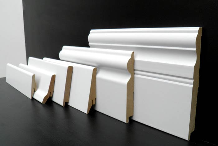Beyaz MDF süpürgelik kullanmak moda oldu: melamin kaplama nedeniyle pratikte üzerinde kir görünmüyor.