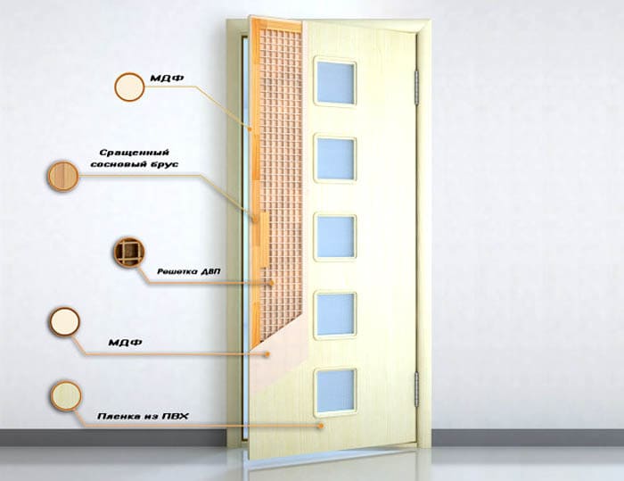 İçi boş alan karton veya sunta ile doldurulur. İçinde çok sayıda hücre varsa tasarım hafiftir. Masonit olarak adlandırılır. Daha sağlam ve ağır seçenekler yalnızca iç kısımdaki MDF'den oluşur.