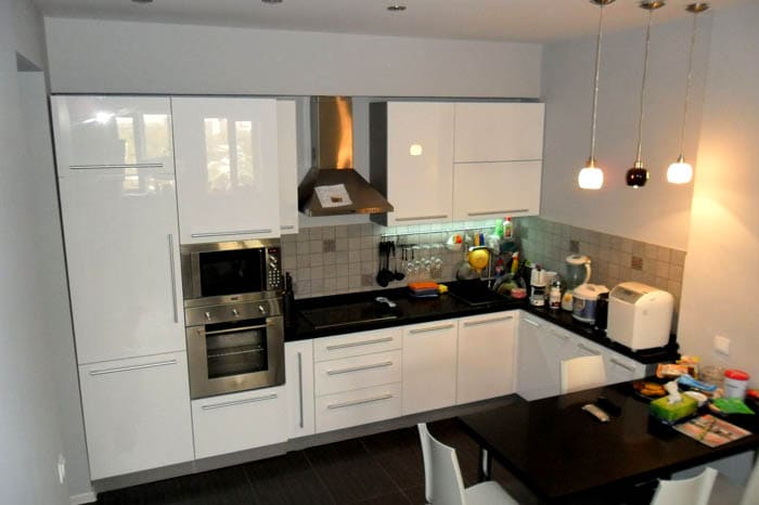 MDF kullanımına bir örnek: panellerdeki emaye, estetik işlevini yerine getirerek mutfağın koşullarına mükemmel bir şekilde uyar.