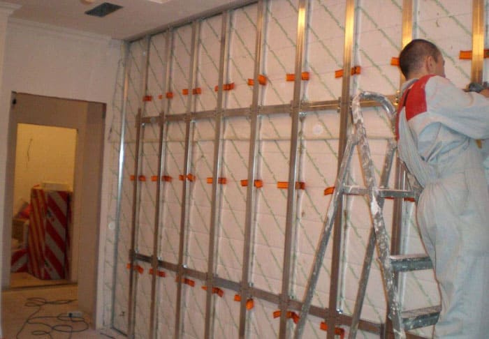 Bu malzeme ile en yaygın yüzey, duvara montajdır. İşin nüanslarını inceleyelim.