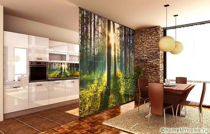 Yemek odası için, odadaki alanı imar etmek için ahşap bölme modelleri satın alabilirsiniz. Ahşap ürünler aşağıdakilerle uyumludur: mobilya rengi ve duvar kağıdı.Alternatif olarak, kademeli bir bölmeyi temsil eden çeşitli raflar kullanılır.