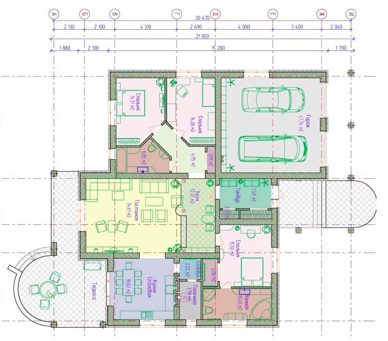 100 metrekareye kadar tek katlı evlerin projeleri. m. ahşaptan, köpük bloklardan, tuğlalardan, metal ve ahşap bir çerçeve üzerine, tasarımın avantajları ve dezavantajları, yerleşimlerin fotoğrafları - yayınımızda.