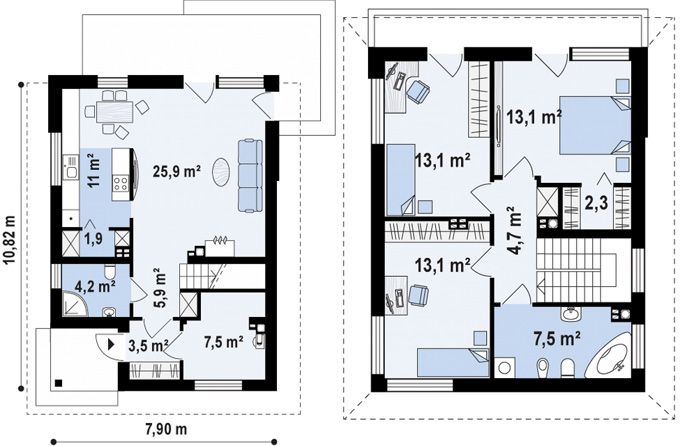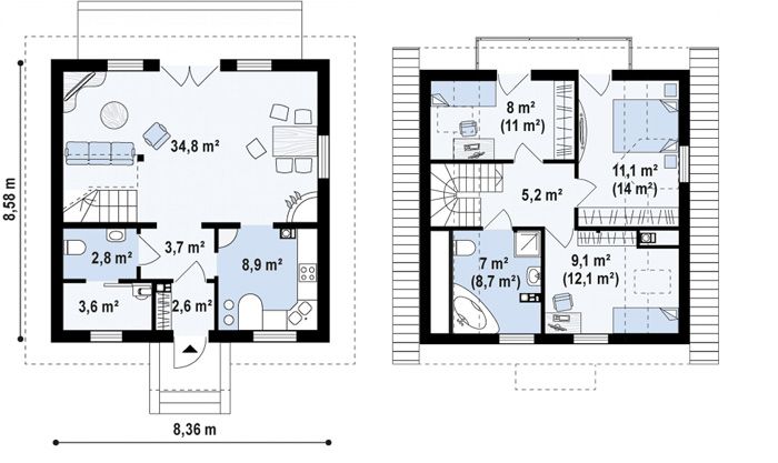 İki katlı evler için planlar. Kapsam ve ayırt edici özellikler, avantajlar ve dezavantajlar, malzemeler; 9x9, 10x10, 7x7, 6x8, 6x10, 9x6, 12x12 metre evlerin düzenleri - yayınımızda.