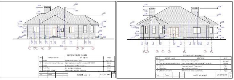 Kontrol yükseklikleri cephelerin planlarında belirtilmiştir. Eşlik eden sayfa kaplama malzemeleri içerir