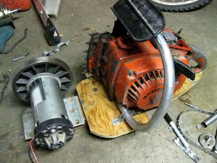 İhtiyacınız olan tek şey arabanızdan eski bir jeneratör, bir motorlu testere ve yıldızlarla dolu bir bisiklet zinciri