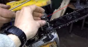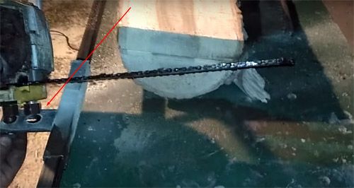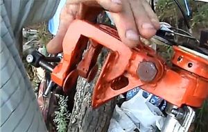 İlkel bir testere cihazı da doğrudan kesim alanında yapılabilir. İş için, ünitenin tasarımını değiştirmenize gerek yoktur, sadece motorlu testere için lastiğin hareketini yönlendiren küçük bir cihaz yapmanız gerekir. Nasıl yapılacağını görün: