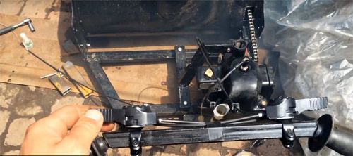 Ancak kendi ellerinizle basit bir cihaz yapabilirsiniz. Motorun takılacağı sağlam bir metal çerçeve yapmanız ve dişli milini monte etmeniz gerekecektir.