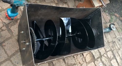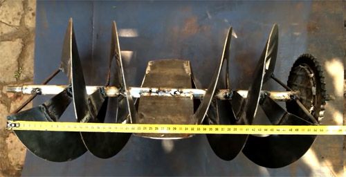 Motorlu matkap, buz deliciyle aynı prensibe göre tasarlanmıştır. Fark sadece nozülde olabilir. Hafriyat işlerinde, spiralin dönme hızı çok yüksek olmamalıdır, bu nedenle, ev yapımı bir tasarımda, hız kontrolü ve basit bir kapatma sağlamak gerekir.