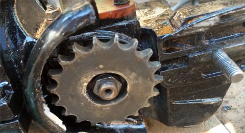 Arka tekerleğe tahrikli bir kasnak takılmıştır, motor çerçeveye güvenli bir şekilde kaynaklanmıştır. Bu olay örgüsünün bir sonucu olarak nasıl görünecek: