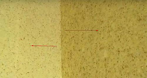 Duvarları nemli bir süngerle bolca nemlendirin ve yaklaşık 10-15 dakika bekleyin. Spatula veya kazıyıcıdan sonra, bileşimi duvarların yüzeyinden çıkarın. Bu süreç hızlı değil. Kuru karışım parçaları yerlerinde kalacak, birkaç kez ıslatılması gerekecek. Sünger yerine kürk rulo kullanılabilir.