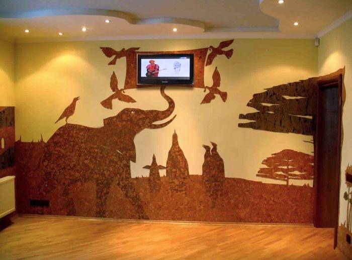 - sıvı duvar kağıdını mantar, bambu keten veya ahşapla birleştirin paneller;