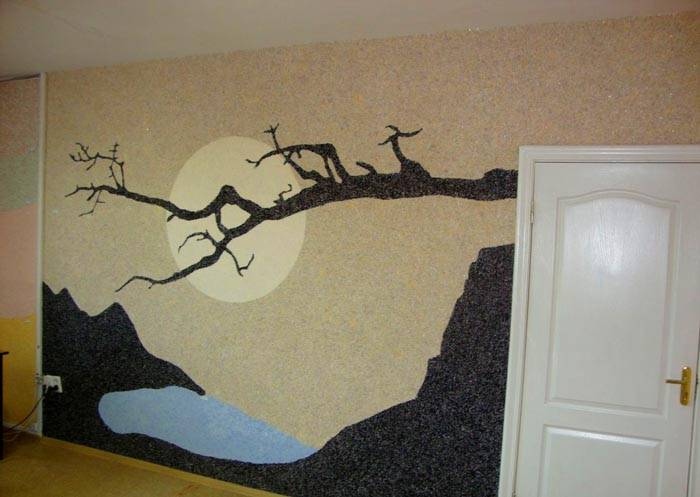 Her zamanki tek tip kaplama sizin için çok sıkıcı görünüyorsa, tasarım tekniklerine dikkat edin. Bunlardan biri duvarları kendi ellerinizle çizimlerle süslemek. Sıvı duvar kağıdı, karmaşık kabartmalı çok renkli kompozisyonlar oluşturmayı mümkün kılar.