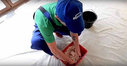 Süreci bir püskürtme tabancasıyla mekanize edebilirsiniz. Kullanmak için kompozisyonu çok iyice karıştırmanız gerekir.