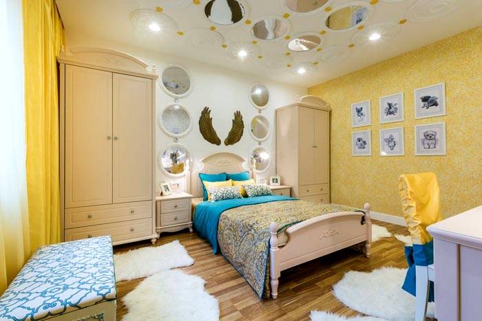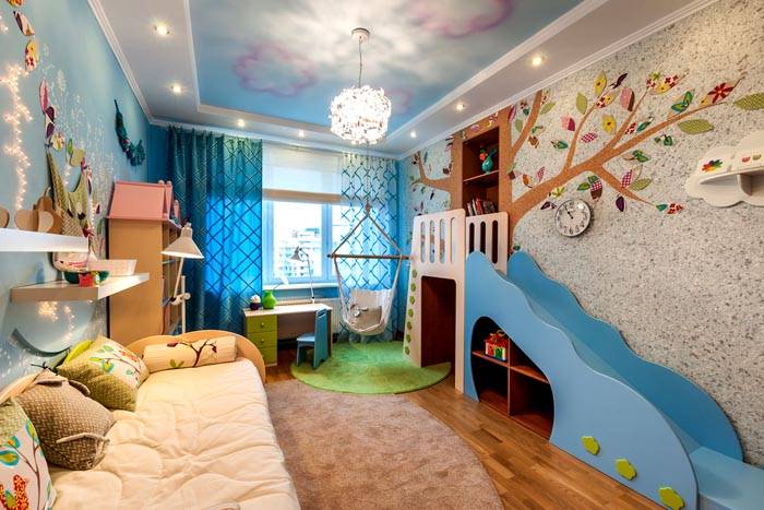 Kağıt sıva kullanarak odayı kolayca bölgeye ayırabilirsiniz. Bu amaçla, farklı renklerde ve hatta dokularda malzemeler kullanılır.