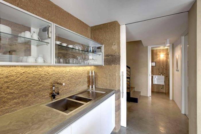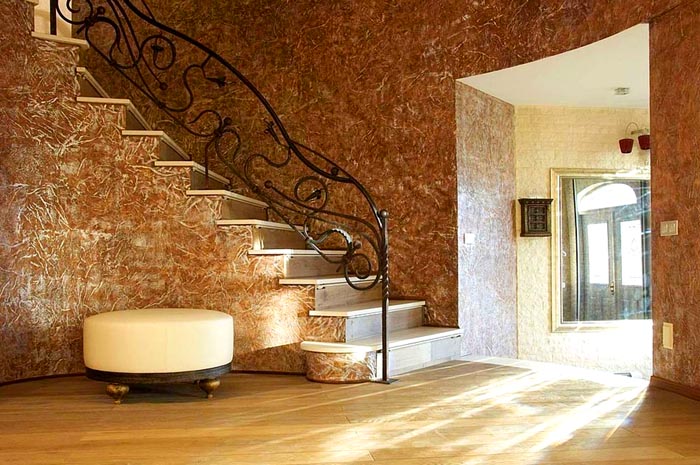 Kağıt sıva organik olarak dar bir iç mekana sığar. koridor alanı... Yardımı ile duvarların hatalarını bile giderebilirsiniz ve zarif doku iç mekana özel bir lezzet katacaktır.