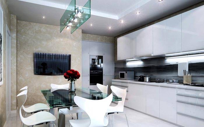 Modern mutfak Sadece yemek hazırlamak için bir yer değil. Güzel bir mutfakta misafir ağırlamak utanç verici değil. Burada sevdiklerinizle öğle yemeği özel bir rahatlık ve samimi atmosferle doldurulacak.Banyo gibi mutfak da özel çalışma koşullarına sahip bir odadır. Sadece yüksek nem ve yüksek sıcaklıklar değil, aynı zamanda buhar ve kurum da vardır.