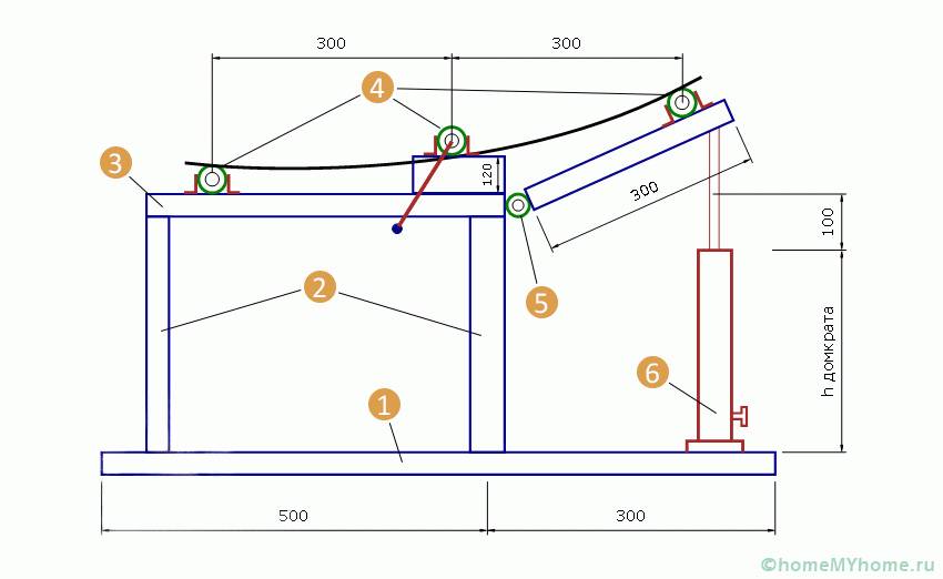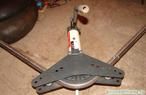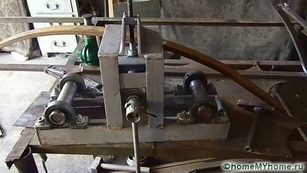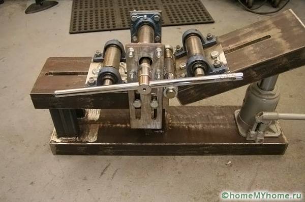 Използвайки заваръчни единици система под формата на правоъгълник е направена от траен канален елемент. Височината му трябва да бъде същата като тази на крика.Този елемент трябва да действа като тласкач. Важно е да изберете висококачествени ролки, за да захванете точно избраните тръби.