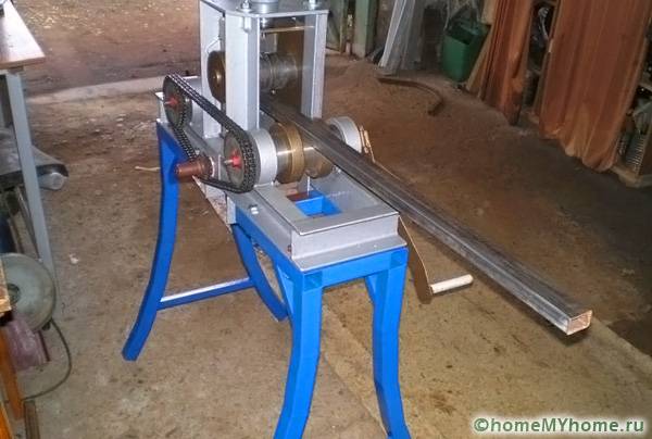 Ръчно изработените продукти са способни да огъват дори елементи с дебели стени. За да направите това, ще трябва да използвате лебедка. Когато се използва профилна линия, скосите не се прилагат при обработка на плоскости. Продуктът е фиксиран със специални ограничителни устройства.