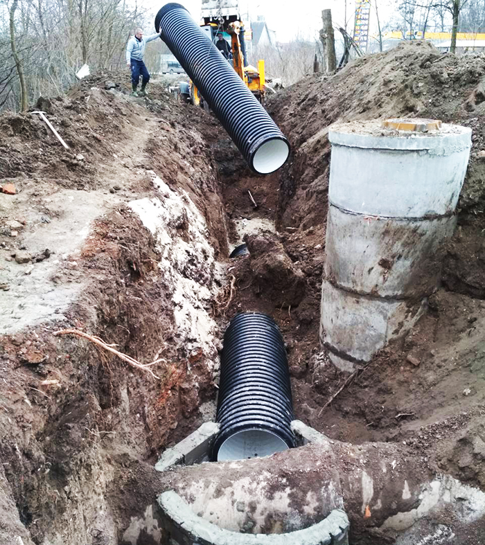 - На открито. Основните изисквания към външните канализационни тръби са широк температурен диапазон и устойчивост на външни механични влияния. Ако за битови отпадъчни води е позволено да се използват тънкостенни и гладки полипропиленови и полиетиленови тръби, тогава за главни тръбопроводи се използват бетонни, керамични и стоманени продукти с подобрени якостни характеристики. Също така е позволено да се използват двуслойни гофрирани полимерни тръби за полагане на магистрали под пътища със среден трафик.