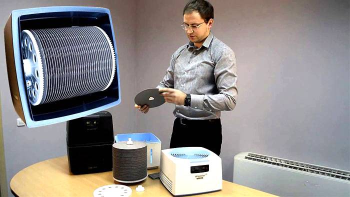 Специализираните почистващи устройства работят на принципите на пропускане на въздух през навлажнени филтри. Повишаването на влажността в този случай е второстепенна функция.