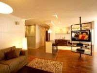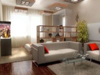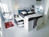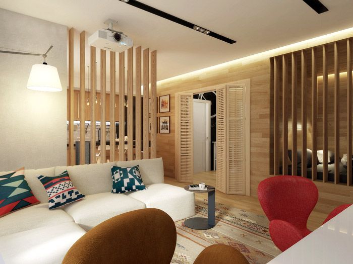 Trong một căn hộ nhỏ, một yếu tố quan trọng là tỷ lệ. Mọi thứ nên được xem xét chiều rộng và chiều dài của căn phòng, chiều cao trần. Nếu chiều cao không đạt tiêu chuẩn và trần nhà rất cao, bạn là người may mắn: bạn có thể trang bị một phần của căn hộ với tầng hai và đặt một khu vực giải trí ở đó.