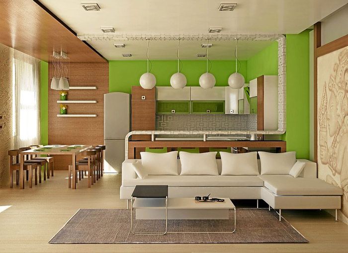 Có thể chọn các khu mà không cần sử dụng đồ đạc và vách ngăn. Điều này là đủ để làm điều này với sự trợ giúp của màu sắc, sử dụng giấy dán tường hoặc màu tương phản của các bức tường. Không quen dung dịch màu các lĩnh vực khác nhau được nhấn mạnh. Bạn cũng có thể sử dụng cho mục đích này sự kết hợp của một bức tường trơn với hoa văn hoặc vật trang trí.Một ví dụ khác về khoanh vùng là làm nổi bật các khu vực trên sàn. Điều này có thể được thực hiện bằng cách sử dụng các lớp phủ và màu sắc khác nhau.