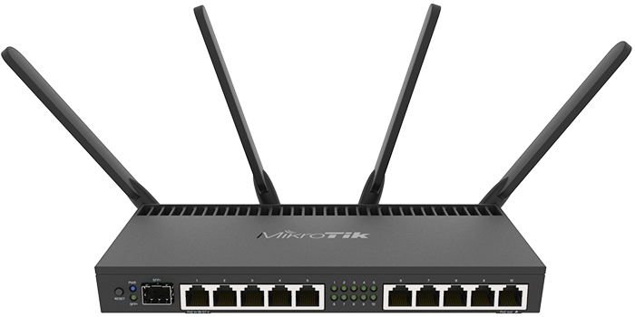 Bộ định tuyến mạng. Mẫu bộ định tuyến Wi-Fi MikroTik RB4011iGS có hỗ trợ Wi-Fi và PoE (truyền điện qua cáp FTP)