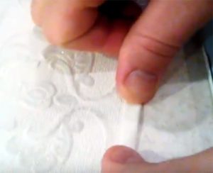 Bóc lớp màng bảo vệ và nối hai nửa nếp gấp dưới với nhau, gập đôi lại.