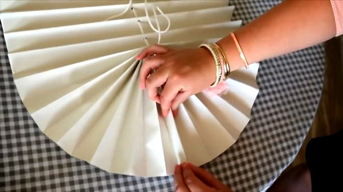 Cắt một đoạn băng dính hai mặt dài khoảng 20 cm, bằng chiều rộng của nếp gấp đàn accordion. Dải được dán ở một bên vào nếp gấp dưới cùng