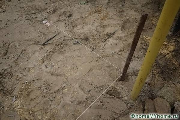 Изберете място, където ще се намира бъдещата писта; трябва да се има предвид, че трябва да има наклон от около 0,5 см на метър. Това е необходимо, за да може водата да отиде на поляната. След като сте избрали място, трябва да започнете да оборудвате основата. За да направите това, поставете коловете на височина 5-7 см, издърпайте кабела. Трябва да се отстранят сода, отломки и излишни камъни и е желателно да се отървете от тревата.