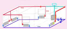- Когато се изтегли една хоризонтална тръба и от нея към радиаторите, щрангове от тръби с малък диаметър се спускат отгоре.
