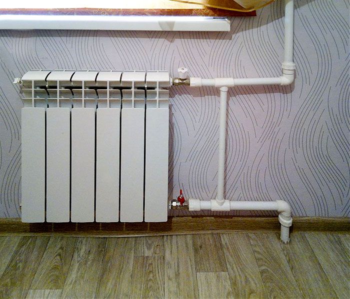 Устройствата са инсталирани по стените по периметъра или само по външните стени, те са свързани към котела последователно. Връзката се извършва с пластмасови тръби с малък диаметър. Често се използва за това тръба за подово отопление.
