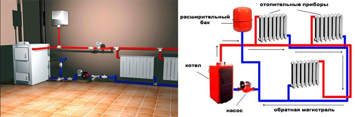 Схема за отопление на едноетажна къща с принудителна циркулация на охлаждащата течност