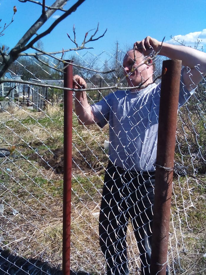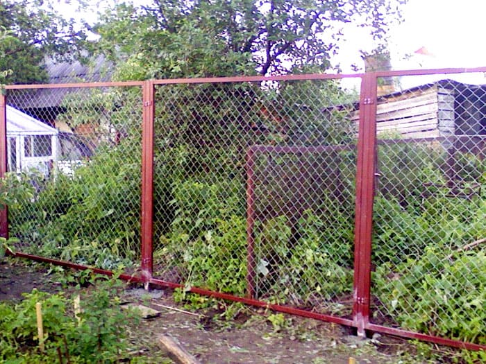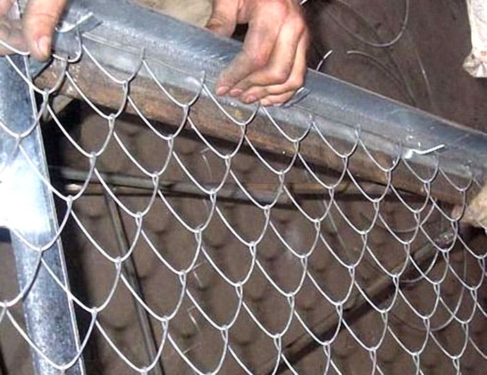 Платното на верижната връзка се завинтва върху рамката с тел. Това е най-добрият начин да се монтира мрежата за последваща декорация или, ако има планове, да се замени мрежата с метален профил или шисти.