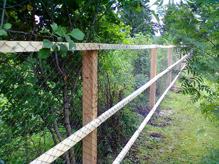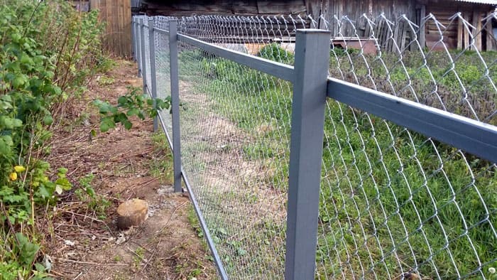 Не е необходимо да опъвате жицата през мрежестите клетки. Ако участъкът на оградата е малък, това все още е допустимо. С дълга ограда е безсмислено