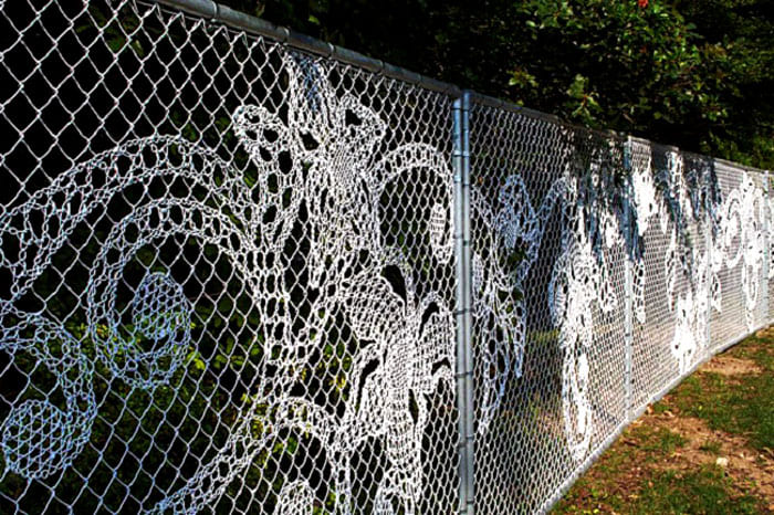 Ажурна ограда се получава чрез преплитане на тънка тел или вълнени нишки. Но вторият вариант е подходящ само за година или две, тогава нишките ще се разпаднат