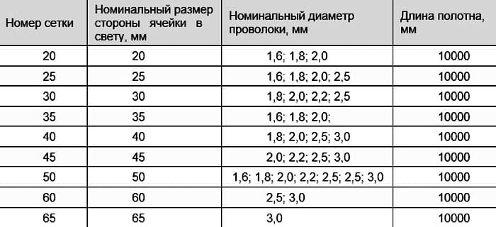 GOST посочва, че мрежата с клетки с размери 10 × 10 mm² трябва да се състои от тел с диаметър 1,4-1,6 mm. Колкото по-голям е просветът, толкова по-дебел е проводникът, но колкото по-малка е клетката, толкова по-здрава е оградата.